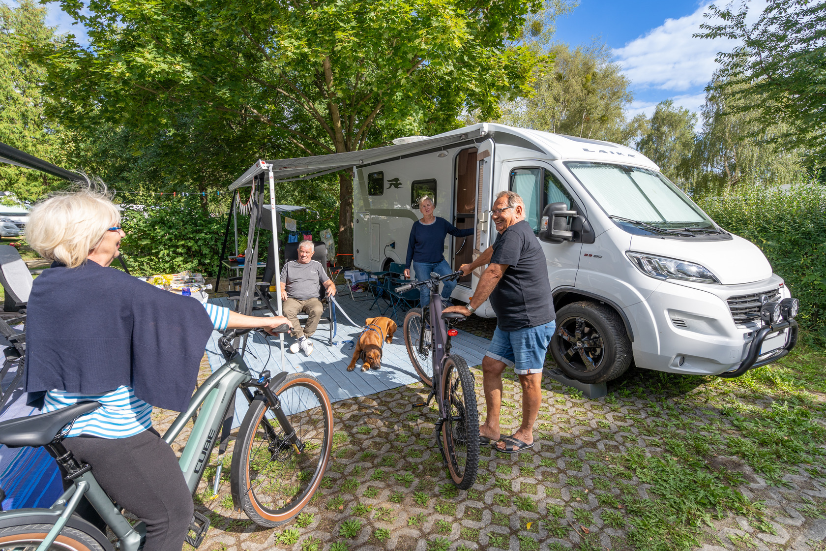 Unsere Mietwohnwagen verfügen über ein Doppelbett (160x200 cm Liegefläche), ein Etagenbett mit 2 Schlafplätzen (jeweils 70x200 cm Liegefläche), zwei gepolsterte Sitzgruppen, ein TV-Gerät und ein Badezimmer mit Toilette und Waschtisch sowie eine Klimaanlage. Im geräumigen Vorzelt finden Sie Miniküche mit Kühlschrank, Cerankochfeldern, ein Tisch mit Stühlen und eine Duschkabine, die sich in einem abgetrennten Bereich befindet. Die Nutzung der Duschen und WCs in den Sanitärgebäuden ist für unsere Übernachtungsgäste kostenfrei. WLAN ist auf dem Platz begrenzt verfügbar.